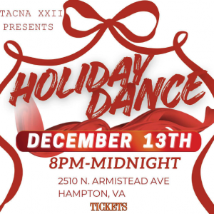 TACNA XXII Holiday Dance TACNA XXII PRESENTS HOLIDAY DANCE DECEMBER 13TH 8PM-MIDNIGHT 2570 N. ARMISTEAD AVE, HAMPTON, ... 13 Dec 8:00 pm 2510 N Armistead Ave, Hampton VA 236662510 N Armistead Ave, Hampton VA 23666